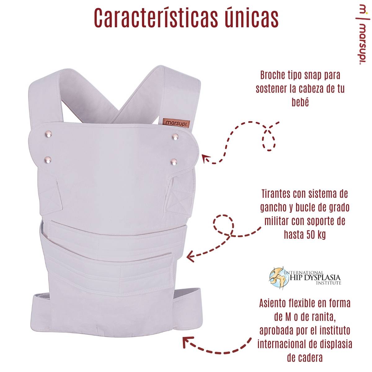 Diseñado para usarse desde los 3.5 kg hasta los 15 kg, ofrece una experiencia ergonómica completa para bebé y cuidador. Su práctico cierre de velcro tipo militar evita complicaciones con broches o nudos, y se adapta perfectamente al cuerpo.