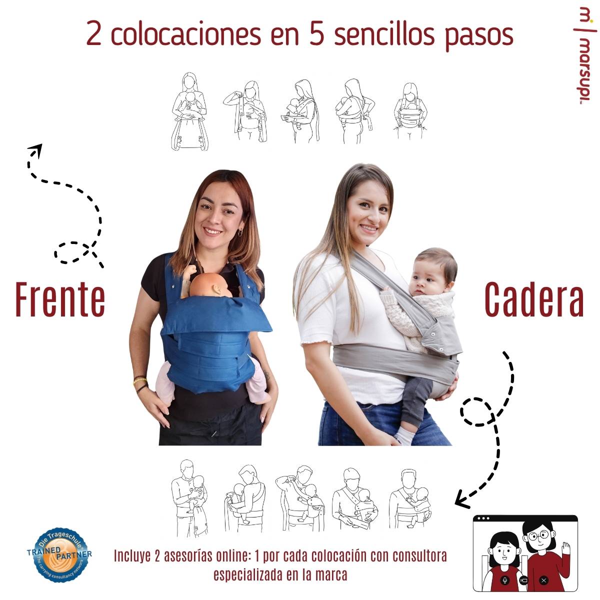 Tiene dos posiciones ergonómicas: al frente y en la cadera, ambas respetando la posición en “M” recomendada por ortopediatras en México. También incluye soporte cefálico integrado, ideal para sostener correctamente la cabeza de tu bebé, y un adaptador para recién nacido.