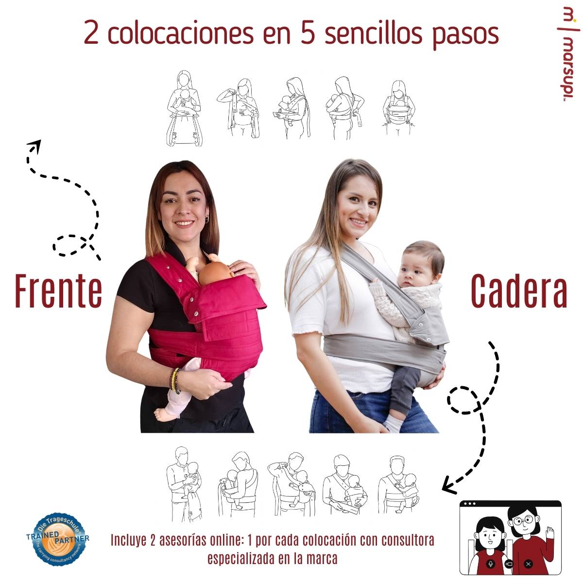 Incluye envío gratis, garantía de 2 años, tarjeta de autenticidad, acceso a grupo de apoyo, clases grabadas y una asesoría online personalizada de 30 minutos. Un básico de porteo que lo tiene todo.